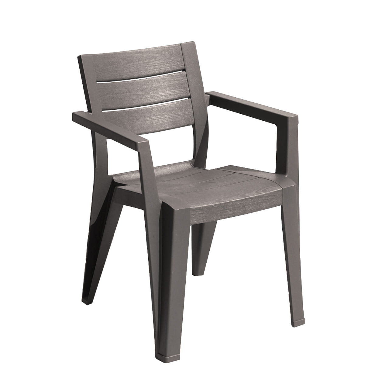 Krzesła Julie: To synonim wygody i praktyczności. Dzięki możliwości wkładania jedno w drugie, łatwo je przechować, a ich nowoczesny design doda stylu każdemu ogrodowi. Są również odporne na czynniki atmosferyczne, takie jak deszcz, śnieg, promieniowanie UV, co czyni je doskonałym wyborem do użytku na świeżym powietrzu.
