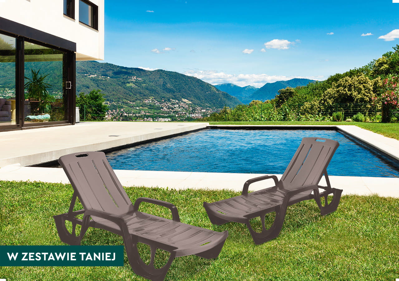Komfortowy zestaw 2 leżaków Florida – relaks na najwyższym poziomie! Połączenie praktyczności i trwałości dla rodzin i miłośników odpoczynku.